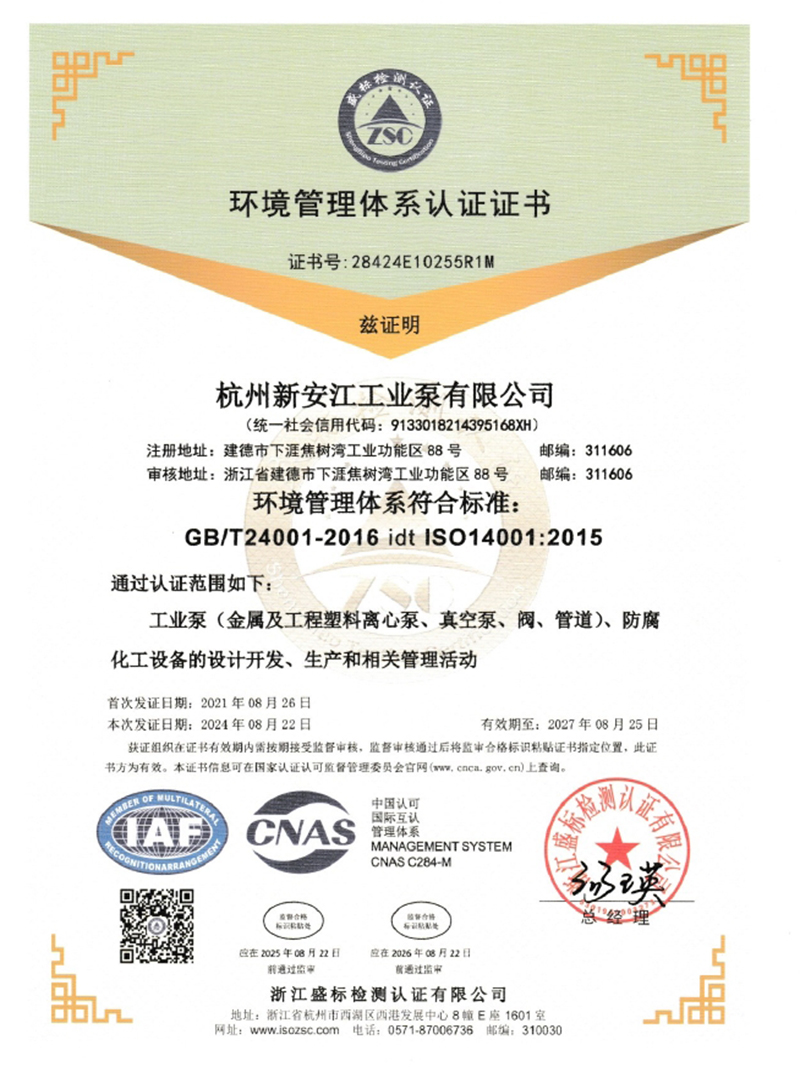 環(huán)境管理體系認(rèn)證證書